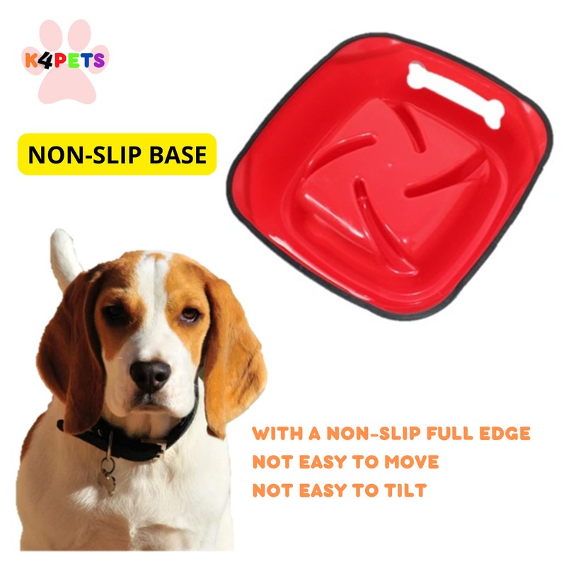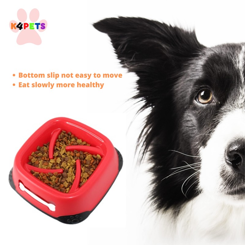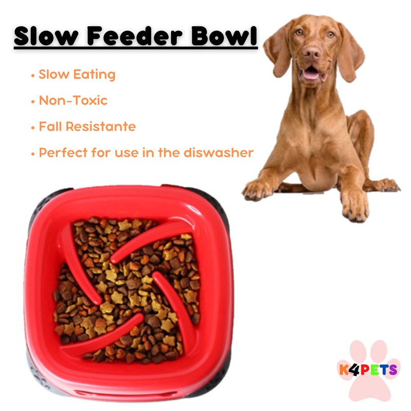 Slow Feeder Dog Bowl, Size M - Slows Down Pets Eating, Red Color, Feed x10Slow, Prevents Overeating, Feed Medium and Large Breed Puppy, New Shape, Dogs Pet Bowls for Dry and Wet Food K4PETS