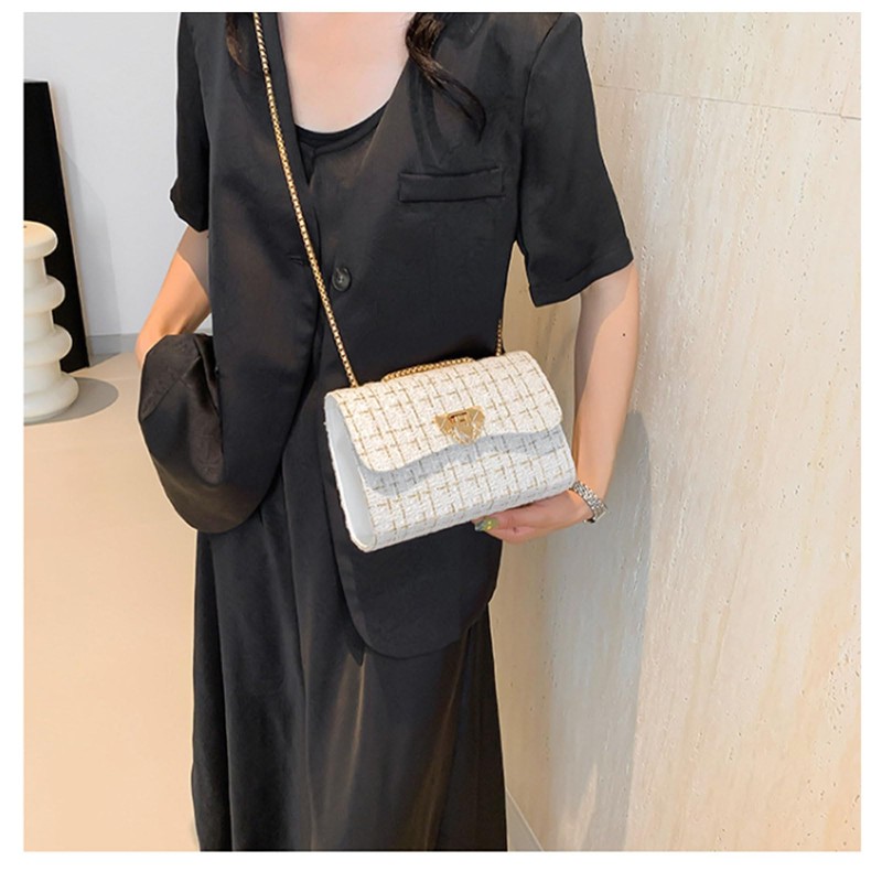 SLOW & MELLOW Women's Mini Shoulder Bag, Tweed, Gold Chain, Cross-body Casual, Adult, Compact, Stylish, Bag, Party, 4 Colors, white 2
