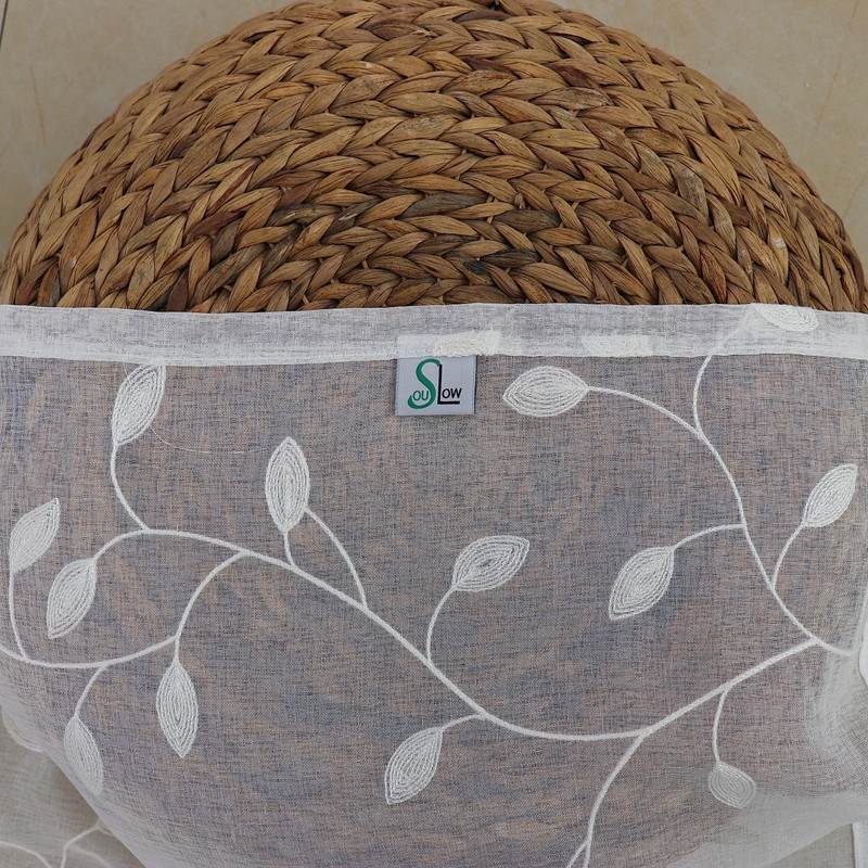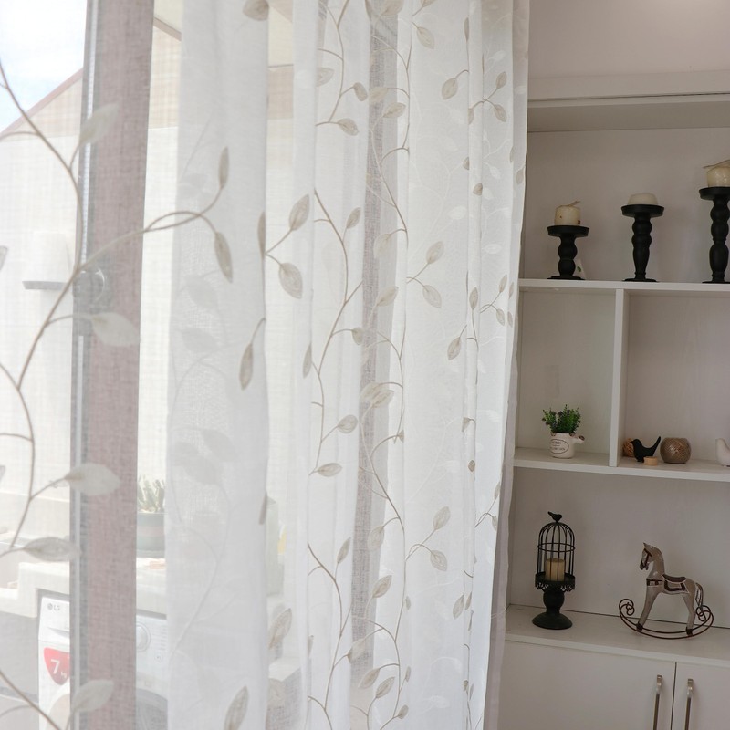 SLOW SOUL Set of 2 Panels White Leaves Sheer Curtains French Door Curtains Semi Sheer Leaf Embroidered Curtains & Drapes for Bedroom Living Room Rod Pocket 52W X 102L inch