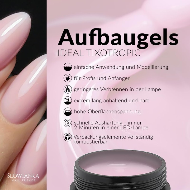Slowianka Nail Trends Construction Gel, Building Gel UV, LED Gel, Dark Body Cover Ideal Tixotropy, Easy Levelling, Easy Self-Levelling, 50 g Builder Gel for Gel Nails, Build Gel for UV Lamp Pink