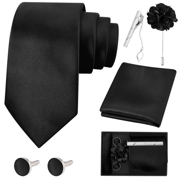 - Set de Corbata para Hombre --- Este set incluye una corbata de alta calidad, un elegante pañuelo de bolsillo, dos refinados gemelos, un pasador de corbata minimalista y un pin de solapa con estilo. Cada pieza está diseñada para elevar tu estilo masculino, siendo ideal para reuniones de negocios, bodas o eventos sociales importantes donde desees mostrar un gusto sofisticado.