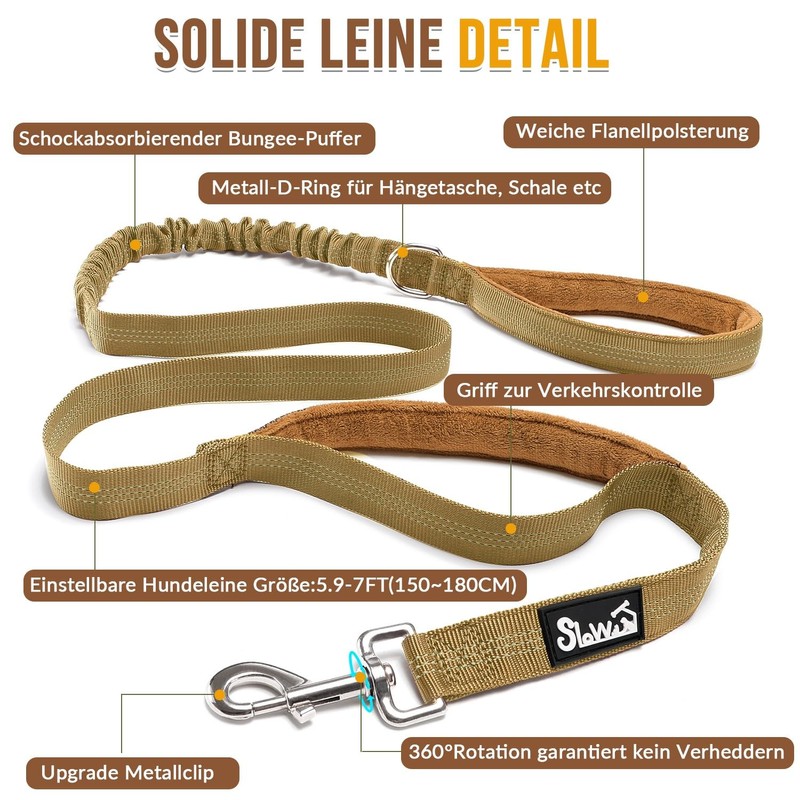- 【Leash Double Handle & Elastic Band】: You can use the top handle for loose dog walks and the middle handle for controlling the dog's direction to easily guide it through crowded areas and prevent storms in the event of an accident. And the springy design of the leash really absorbs the pull of large, strong dogs without tugging on your wrist and shoulder.