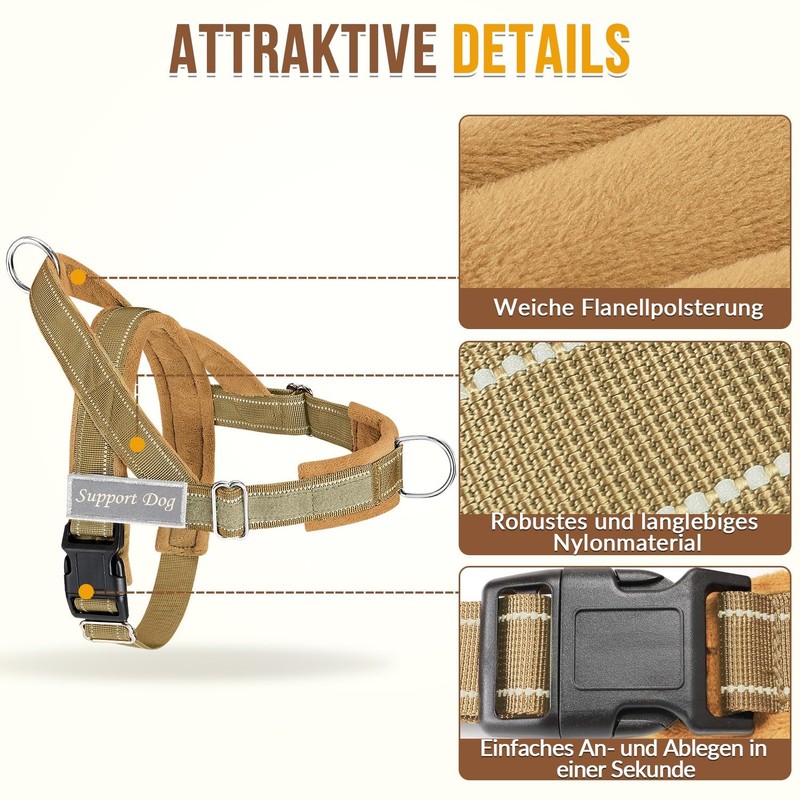 - 【Tangle Free Leash & Reflective】: The heavy duty 360° rotating metal hook ensures that it does not get tangled. It also has an elastic rubber band and 2 padded handles that are ideal for walking training city dogs or for hiking in the country. In addition, the super bright reflective strips ensure a safe walk day and night. And it comes with 2 Velcro straps, a normal support dog and the reflective DO NOT PET.