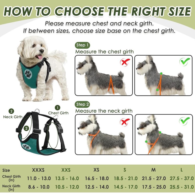2.XXS --- Chest girth ( 13.5-16 inch), Neck girth (10.5-12 inch)