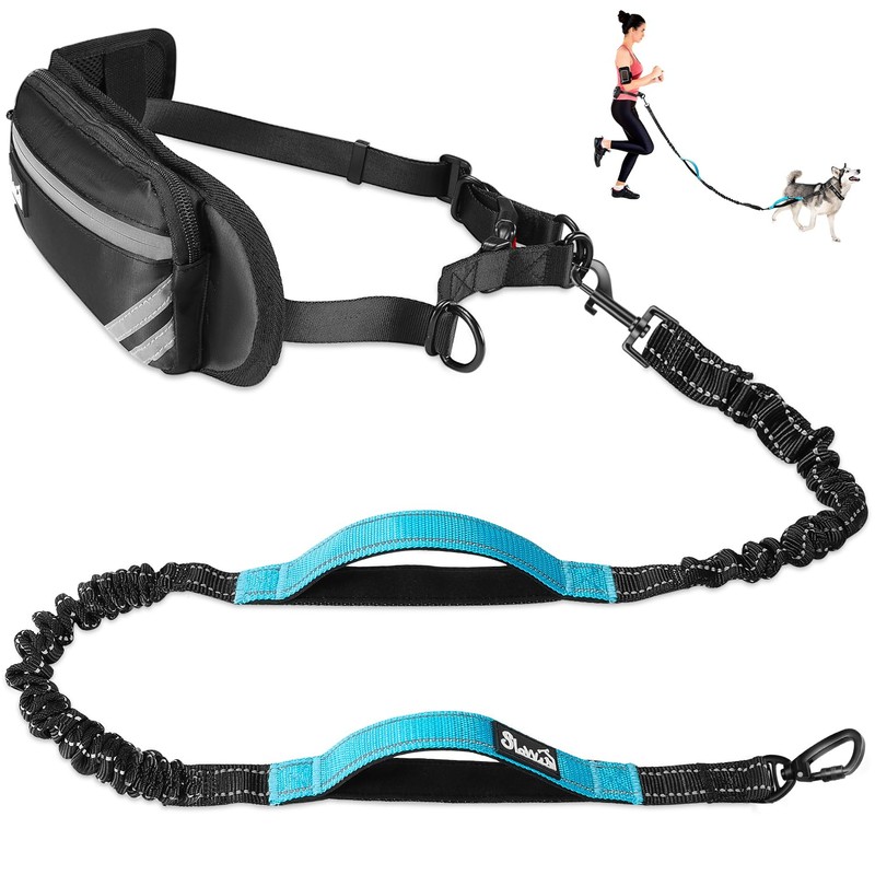 SlowTon Hands Free Dog Leash with Removable Zipper Pouch, Shock Absorbing Bungee Leash, Dual Handle and Reflective Stitches, Wide Padded Adjustable Waist Leash for Dogs Training Running Jogging
