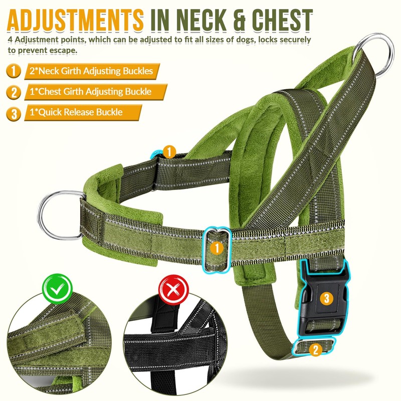 - 【Neck & Chest Adjustable】: SlowTon dog harness is equipped with adjustable loop for both neck and chest girth, and the quick-release buckle allows for quick donning. No matter what kind of breed and shape, it provides proper length after adjusting to fit your dog's neck and chest, which is perfectly designed for walking, jogging, running, hiking and training.