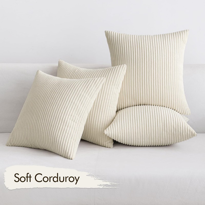 SLOZZI Set of 4 Corduroy Cushion Covers, Sofa Cushion Covers, Decorative Cushion Cover, Couch Cushion, Soft, for Sofa, Bedroom, Living Room, Office, 50 x 50 cm, Cream