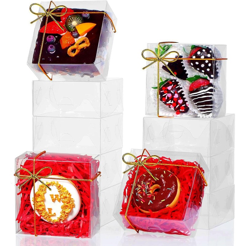 SLShePack SLShePack 25Pack 5x5x2Inches Clear Bakery Boxes Chocolate Covered Strawberry Boxes for 4 Mini Cake Boxes Cookies Macaron Boxes Pie Boxes Browines boxes