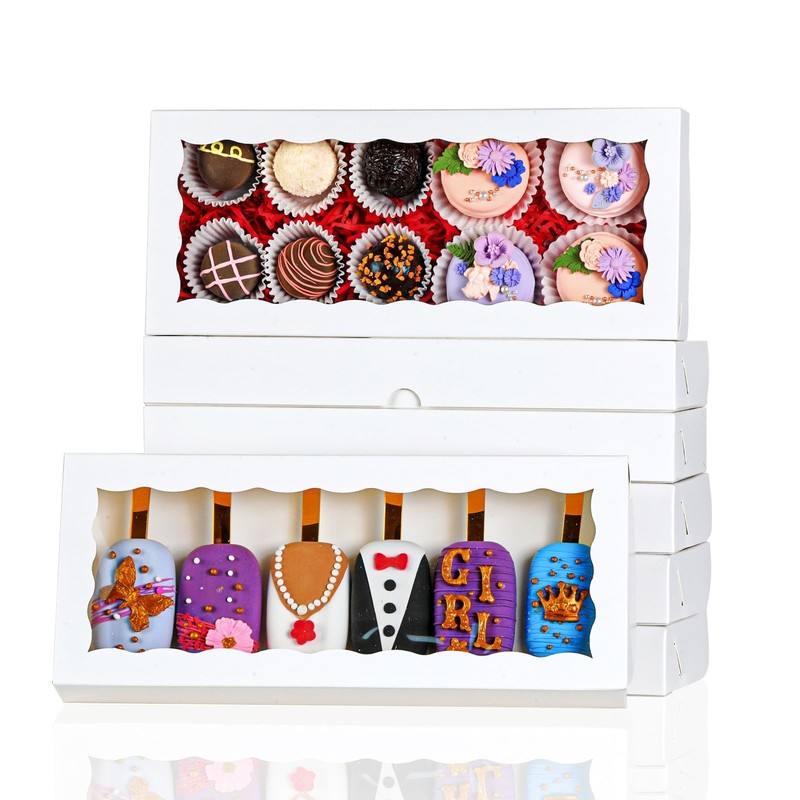 SLShePack SLShePack 50PCS 12x5x1.5 Inch Cookie Boxes with Window Chocolate Truffle Brownie Packing Bakery Pastry Gift Boxes for Soap,Dount,Browine Cake,Treat Boxes for Party Favors Christmas