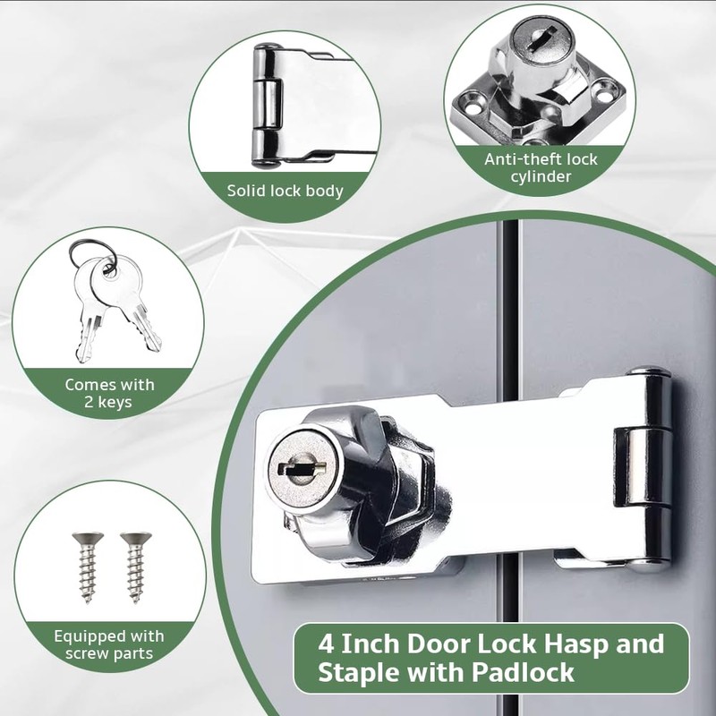 The closing bracket and clamp of the door lock are equipped with 6 screws and 2 keys, easy to install and can effectively prevent strangers from disassembling and breaking the door. Size: 4 inches.