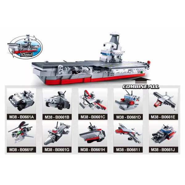 Sluban Army Aircraft Carrier 10-in-1 Display Kit Building Bricks 361pcs B0661