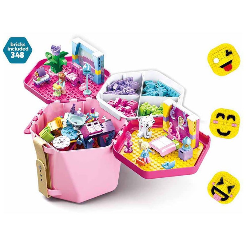 Sluban Clamping Blocks M38-B0830 SL95700, Play & Transport Bin Pink (Including 348 Pieces), Play Set, Clamping Blocks, Building Blocks, Building Blocks, Base Blocks