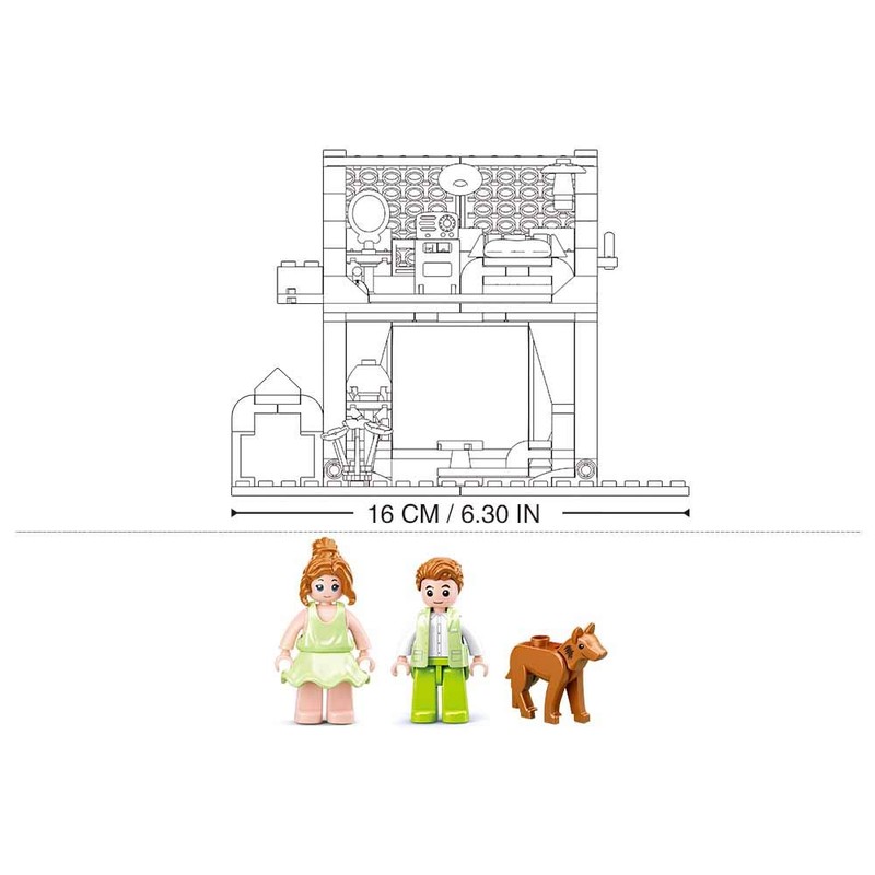 Sluban Clamping Blocks SL95691, New Neighbours (244 Pieces) [M38-B0821], Play Set, Clamping Blocks, City, with Toy Figure, Girls' Dreams, Colourful