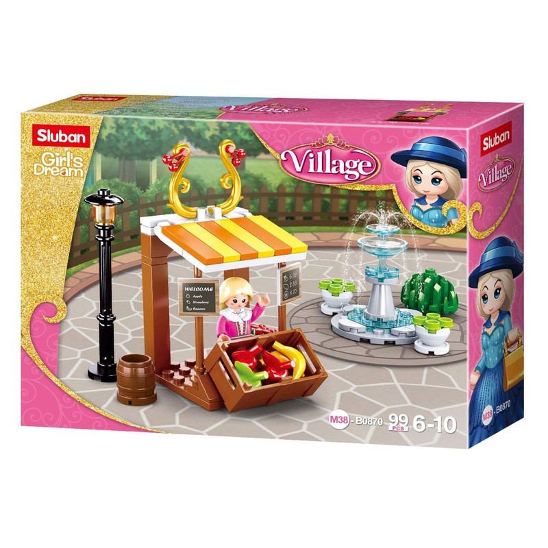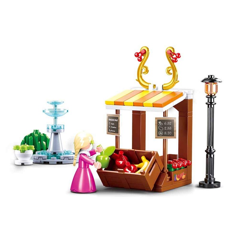 Sluban Clamping Blocks SL95730, Fruit Stand, 99 Pieces, M38 B0870, Playset, Clamping Blocks, City, with Toy Figure, Girls' Dreams, Colourful