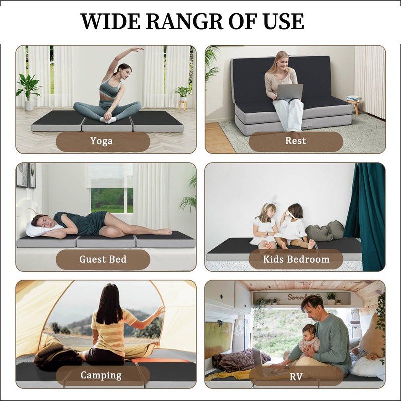 - 【Mattress in a box & Easy to set up】Mattress in a box for convenient transport. Upon receipt the full size mattress, Please allow 24-72 hours for the mattress to expand to the original size. This trifold is great for camping, guest beds, or small apartments.
