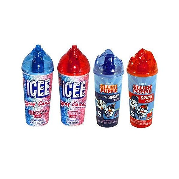 - Spray liquid candy available in two fruity flavors, Cherry and Blue Raspberry