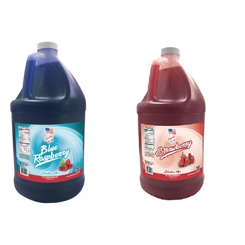 Blue Raspberry/Strawberry Frozen Slush Drink Mix - Half Case Total 2 Gallons - Includes 1 Gallon of Each Flavor