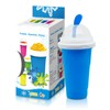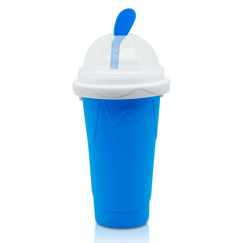 - 【Quick Frozen Magic Cup】:The Slushy Maker quickly turns your favorite drink into a frozen treat! The Slushy Maker is easy enough to be used by almost any member of your family. Chill the Slushy Maker in the freezer for 4-6 hours, remove, pour in your refreshment of choice, and squeeze the silicone cup. A one-minute massage is all that’s needed to slush-ify your drink to perfection. The reusable cup has a removable dome lid and handy, reusable spoon-straw to help you slurp down the slush.