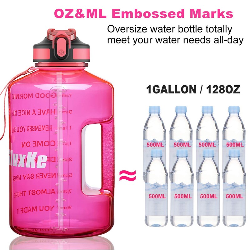 SLUXKE SLUXKE 1 Gallon Water Bottle with Time Marker BPA Free Motivational, 128oz Leak Proof Water Bottle Jug with Handle and Straw Pink