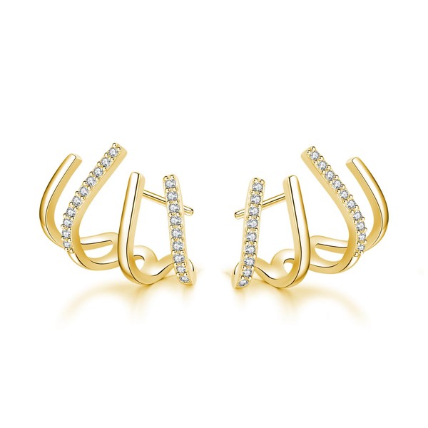 SLUYNZ 925スターリングシルバークールCZカフピアスピアス女性用ティーンガールミニマリストクローハギースタッド