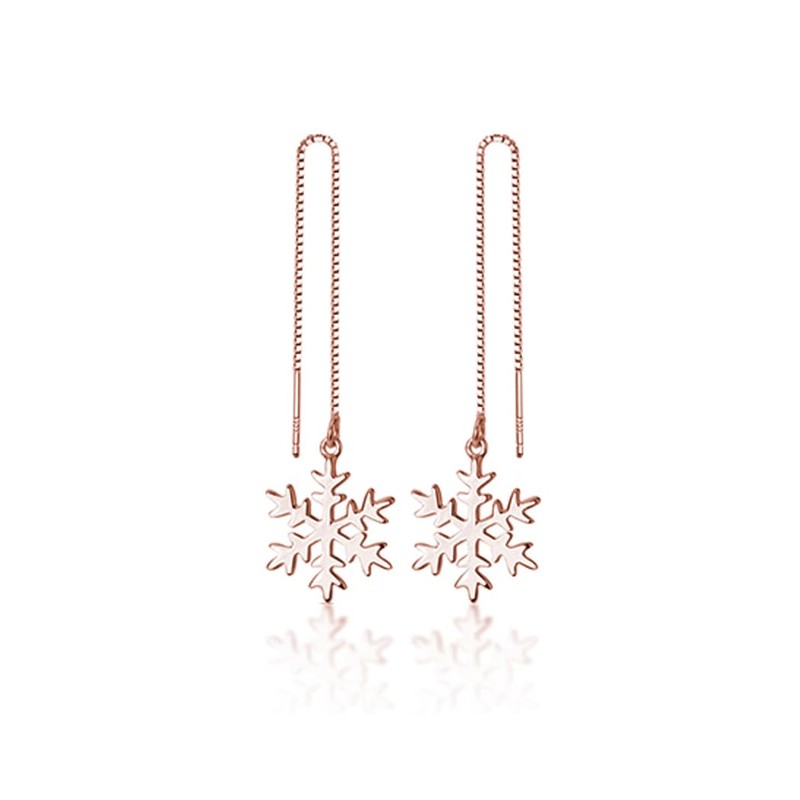 SLUYNZ 925 Sterling Silver Snowflake Dangle Earrings Chain for Women Teen Girls Christmas Snowflake Dangle Earrings Long Threader Earrings (C-ROSE GOLD)