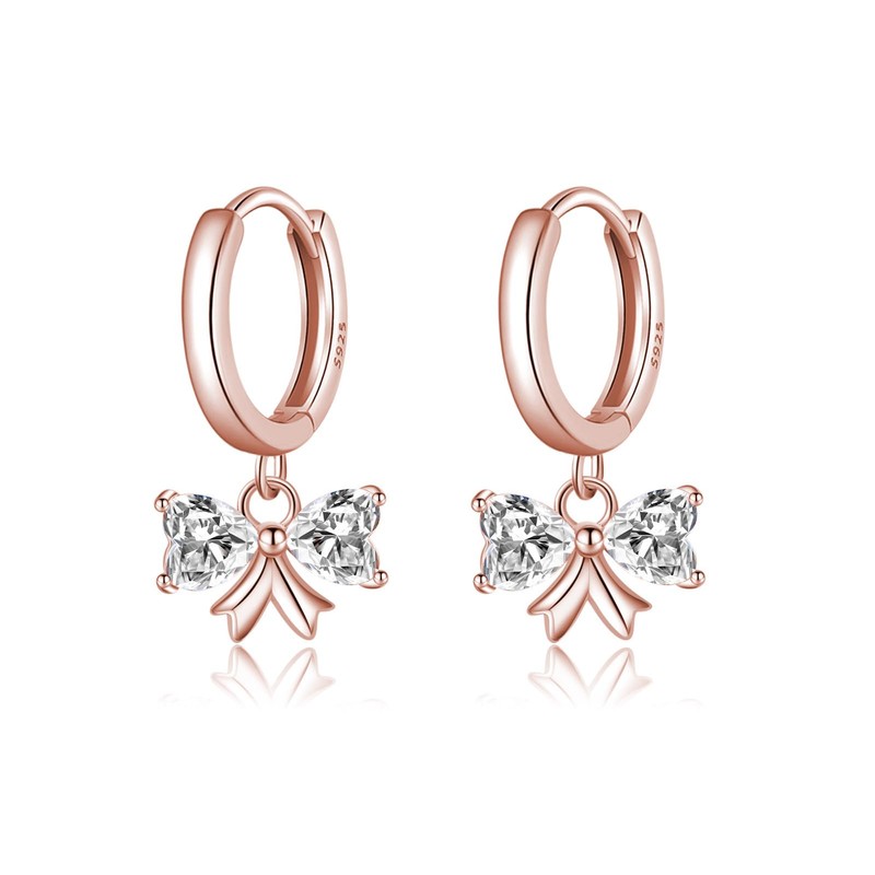 SLUYNZ Sterling Silver CZ Bow Hoop Earrings for Women Teens Love Bow Hoop Earrings Huggie Valentines Day Earrings (C-ROSE GOLD)