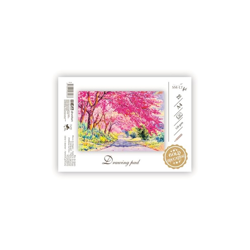 SM.LT Gold Line Drawing Pad Ideal for Pencils and Pens A4 - 20 Sheets 120gsm