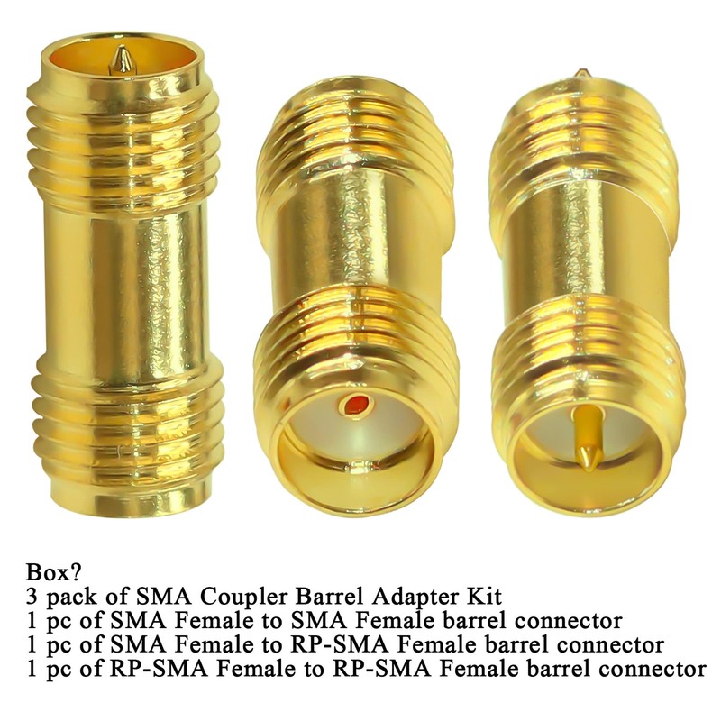 - ♥Package included:3pcs SMA Female Coupler Barrel Adapter Kit (1pcs SMA Female to SMA Female Connector, 1pcs SMA Female to RP-SMA Female Connector, 1pcs RP-SMA Female to RP-SMA Female Connector)