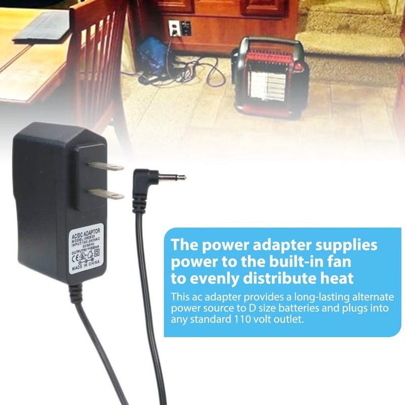 This 6 volt adapter is specially designed for Mr. Heater Big Buddy Heaters and powers the built-in fan to distribute heat evenly