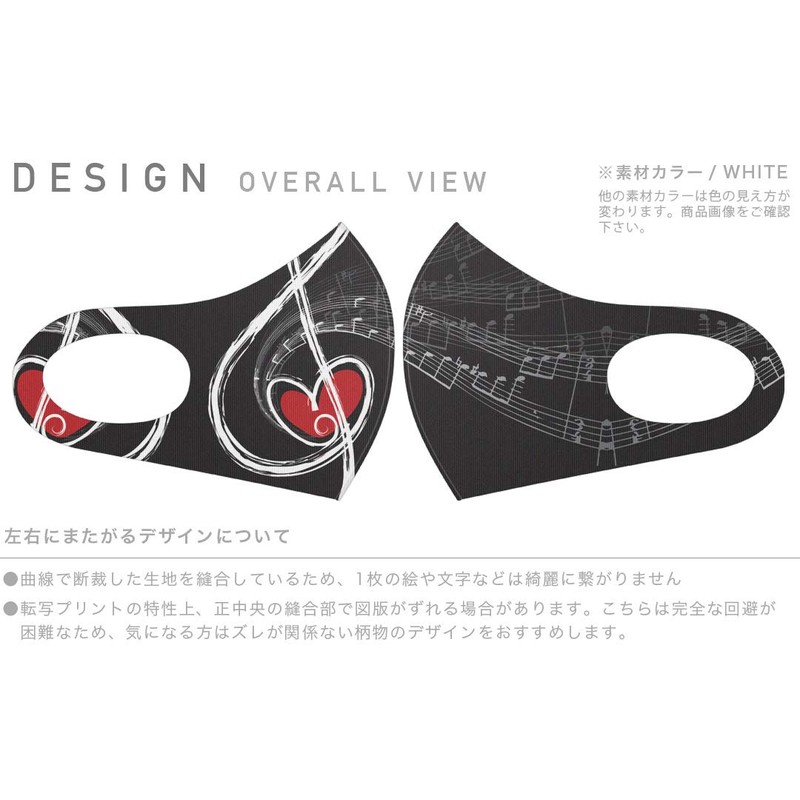 Smakore 008511 Design Mask, Set of 2, Polyester, Washable, Cloth Mask, Unisex, Lovely, Black, Music Notes, Music Notes, Heart