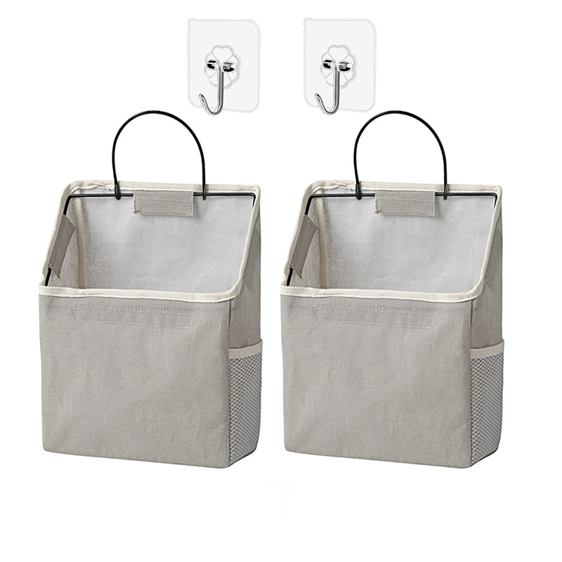 SMALIGOLA 2 Pack Wall Hanging Storage Bag, Hanging Organizer Bag with Sticky Hook, Wall Organizer for Dormitory Bathroom Bedroom Kitchen (Grey)