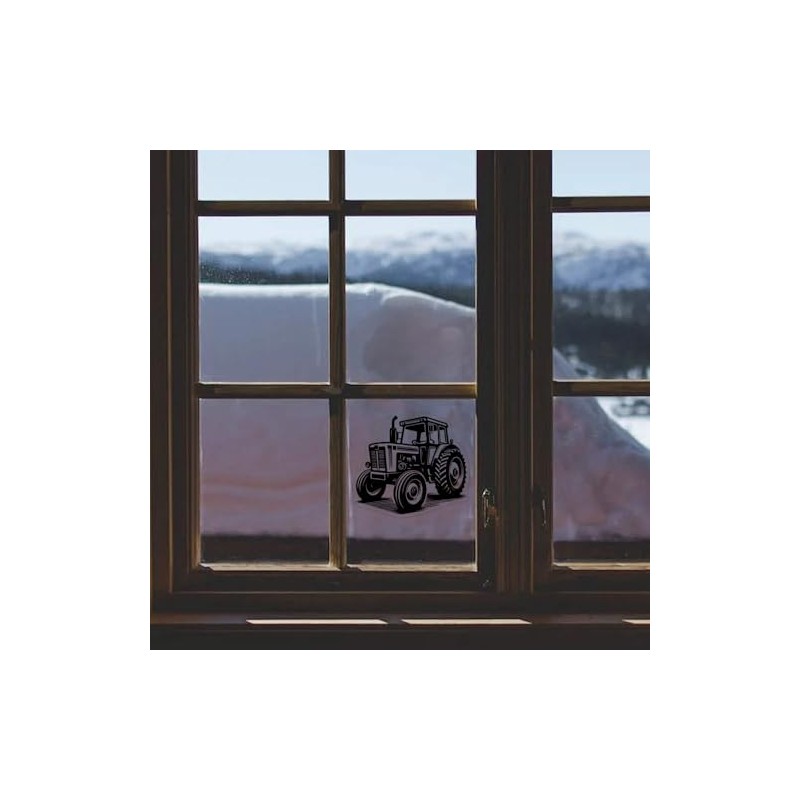 Small 100mm 'Farm Tractor' Clear Static Window Cling Sticker/Decal (Black) (WC00111777)