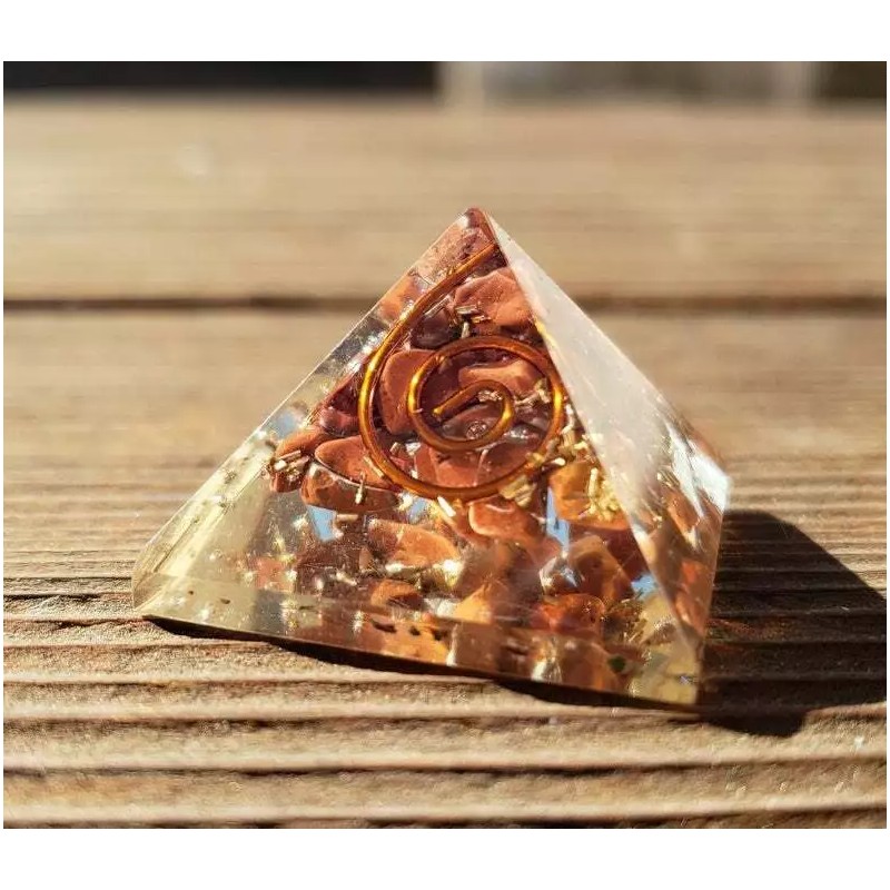 SMALL RED JASPER COIL ORGONE GEMSTONE PYRAMID ORGONE