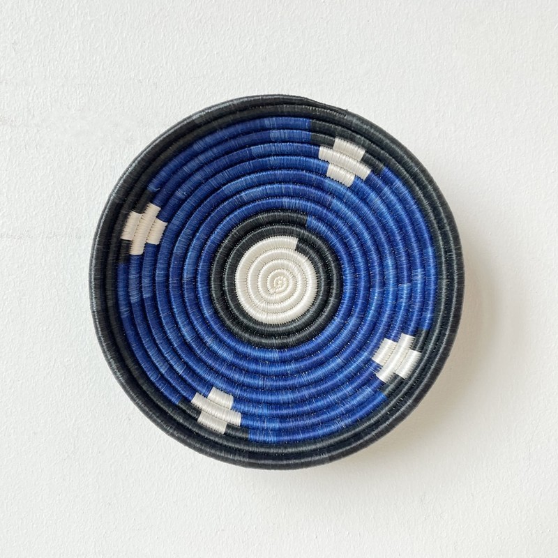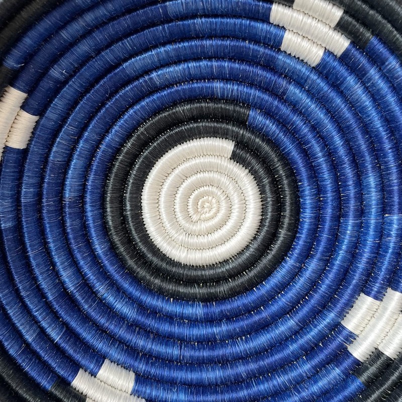 Small African Basket - Urambo/Rwanda Basket/Woven Bowl/Sisal & Sweetgrass Basket/Black, White, Blue