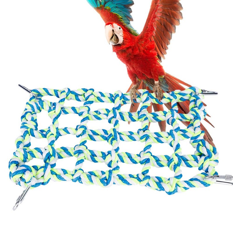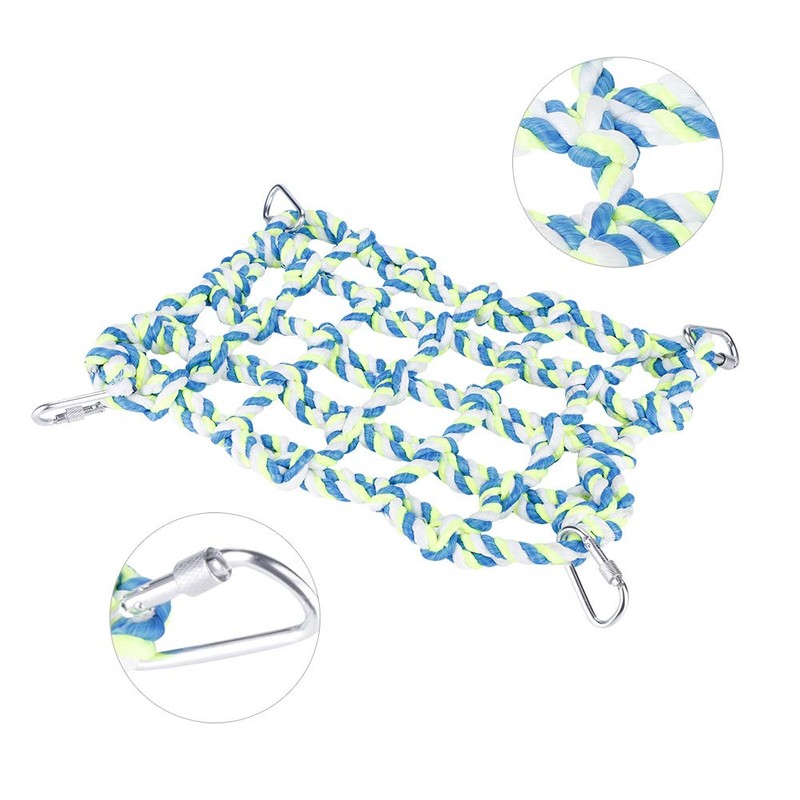 Small Animal Grid Hammock Parrot Color Woven Climbing Net Bird Hanging Rope Colorful Weaving Mesh Pet Swing Ladder Cotton Rope Nets Toys