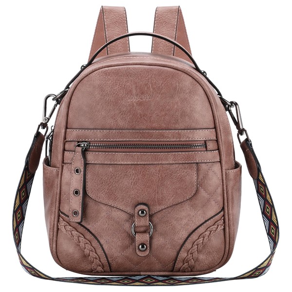 Small Backpack Purse for Women,VASCHY Cute Vegen Leather Mini Backpack for Lady with Guitar Shoulder Bag Handbag Strap Pink