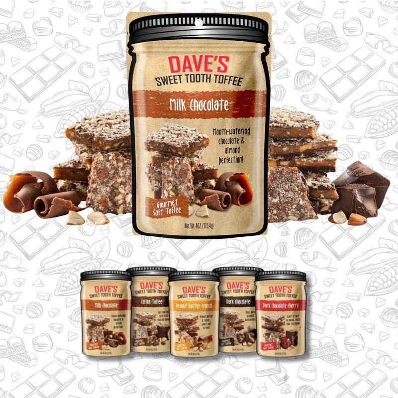 Small Batch Toffee, 1/4lb Pouch - Dave's Sweet Tooth - Award Winning Chocolate Almond Toffee Snack Candy & Sweets Recipe:_Raspberry Donut