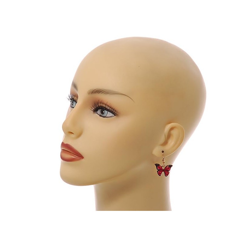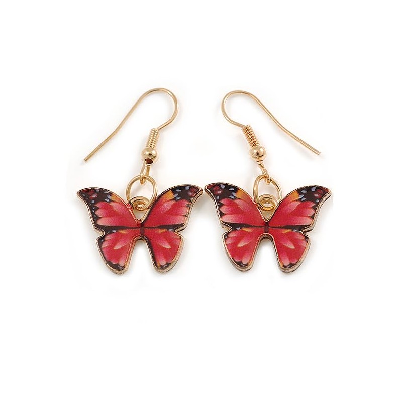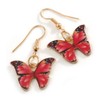 Small Butterfly Drop Earrings in Gold Tone (Red Colours) - 35mm L