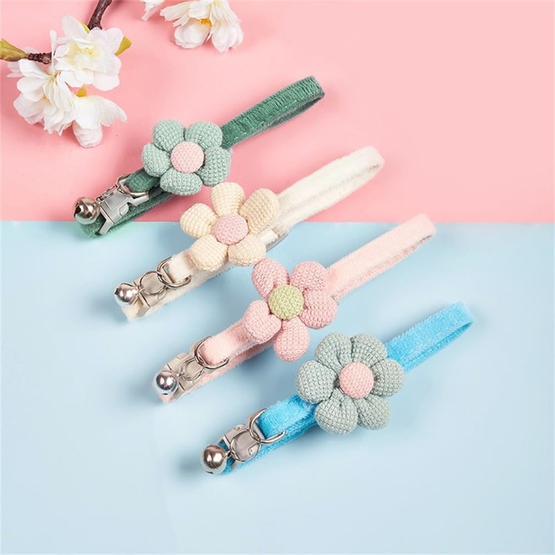 The small cat collar with bell have knitted flowers. It makes your cat more visible cute fancy and beautiful