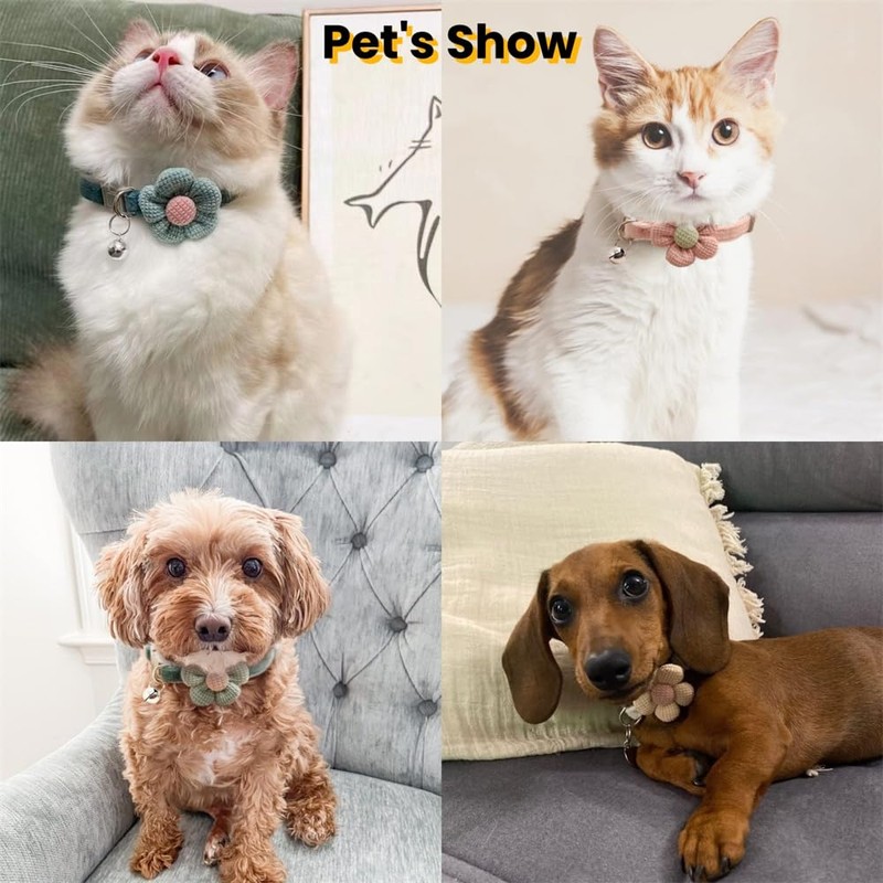 - Fashion Design: The small cat collar with bell have knitted flowers. That is a variety of color options. It makes your cat more visible cute fancy and beautiful