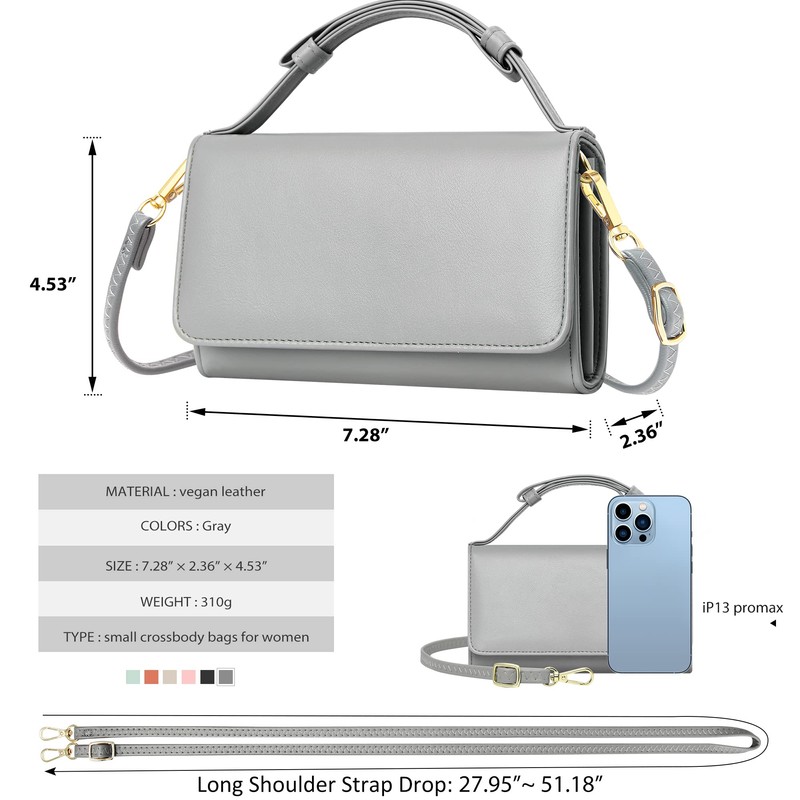 - PERFECT SIZE:Small Crossbody Bag for Women with perfect size, lightweight and very practical, to meet your daily use! the crossbody purse size is 7.28" (L) x 2.36" (D) x 4.53" (H), the removable shoulder strap is adjustable from 11.81" to 21.65" drop, from 27.95" to 51.18" in length