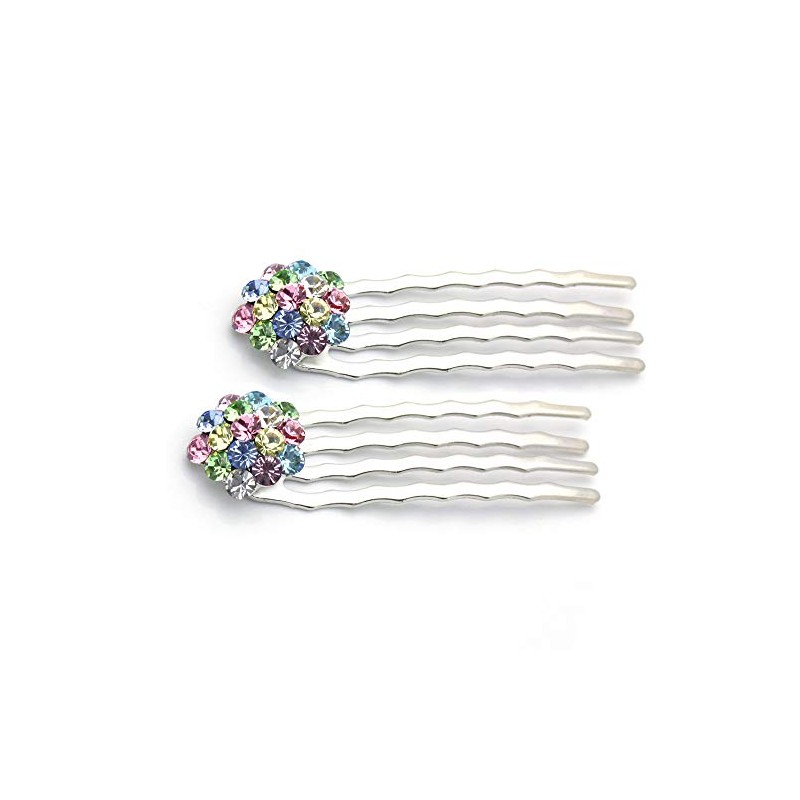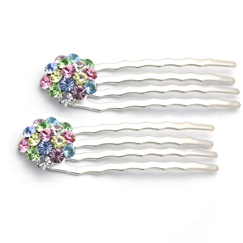Small Decorative Hair Comb Mini Cluster Rhinestone Crystal Bridal Hair Comb, Set of Two, Rainbow