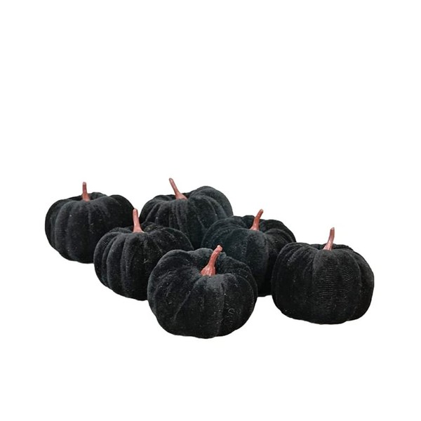 Small Decorative Velvet Pumpkins, Set of 6 (Black)