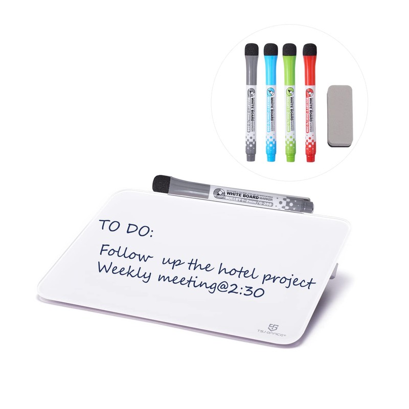 - SMOOTH WRITING & EASY TO WIPE: TSJ OFFICE mini desktop note taking pad comes with a smooth and durable temple glass dry erase writing surface. Our Boards Clean Easily With One Swipe and Resists Ghosting and Staining