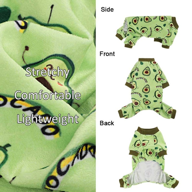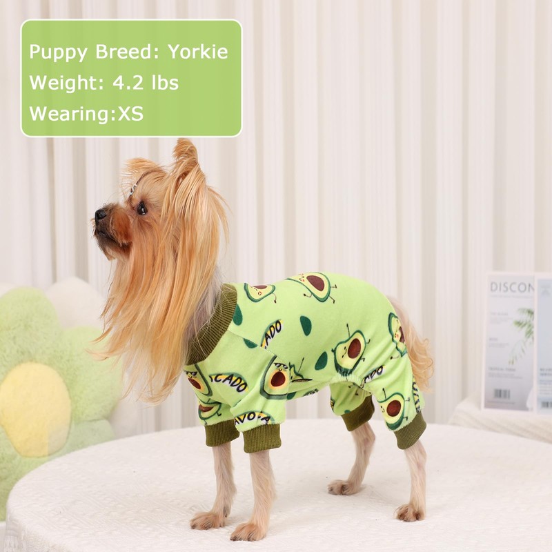 - [Small Dog Pajamas] Dog pajamas small sized dog are made of high-quality soft,breathable and stretchable silver fox velvet, which providing soft and comfortable experience for small dog. Collar, front and rear leg cuffs of dog pajamas wrapped with edges. A rubber band has been added to the front belly of the dog pjs and the elastic design does not restrict the dog's belly. Pajamas for dogs is suitable for all seasons ,including spring, summer, fall and winter.