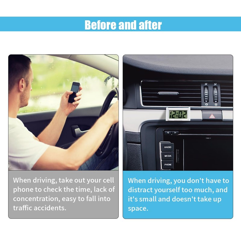 - 【Widely Applications】:Mini digital clock is suitable for many occasions, not only can be used in the car but also in the office, living room, bathroom, and kitchen. You can read the time just by looking at it, no need for any action, safe driving, efficient work, and study.