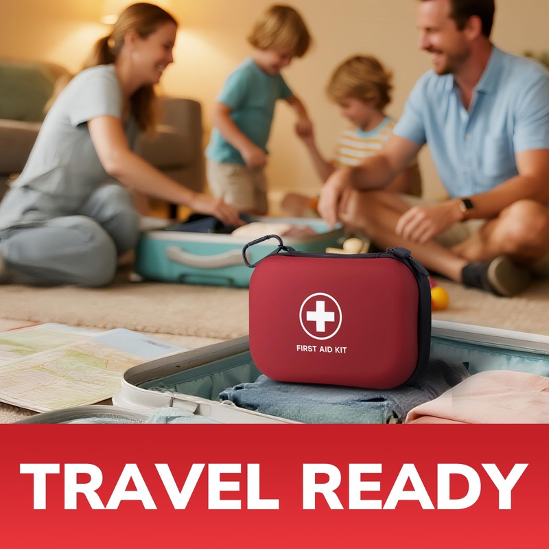 - Portable Design : 6.4" x 4.9" x 2.7" compact size, 0.73 lbs lightweight, features a compact, travel-friendly design, Premium zippers and bonus carabiners increase convenience for outdoor activities. This small emergency kit can also be easily hung on your backpack.144-piece All-Purpose Portable Emergency First Aid Kit is ideal for home, cars, outdoors, dorms & camping.