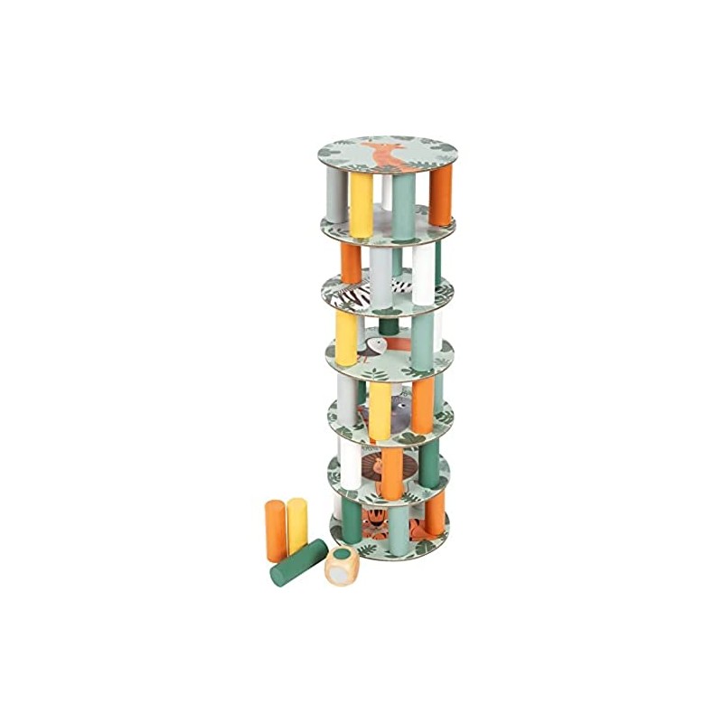 small foot 11958 "Safari" Wobble Tower Board Game in Modern Look with Colour Cube from 4 Years
