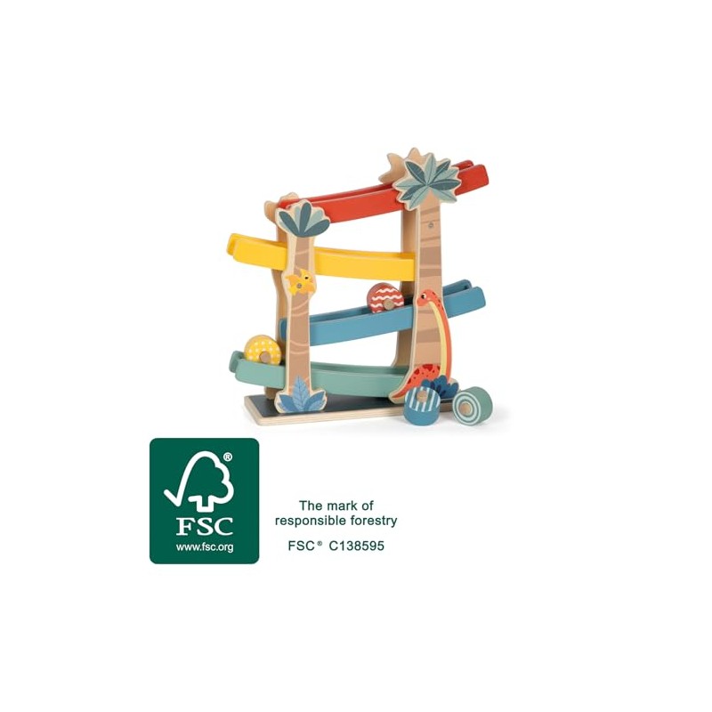 small foot 12614 Dino Marble Run Robust Kuller Run Made of FSC 100% Certified Wood, for Children from 18 Months, Colourful