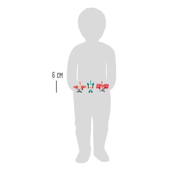 - Dimensions: aircraft approx. 9.5 x 10 x 6 cm, rocket approx. 9 x 5.5 x 5.5 cm